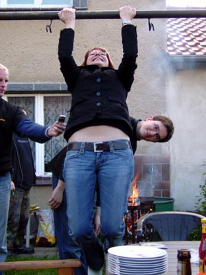 | Nachdem der Pflichtteil abgehakt war, gings ab zur Partylocation und das erste hochverdiente Pils wurde verhaftet. |